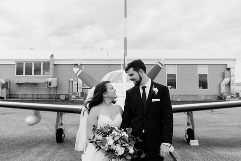 Situated at the Abbotsford airport there are views of the beautiful Fraser Valley. Couples do need to keep in mind if booking this venue the ceremony and reception must take place inside the venue. On warm days there is the opportunity to open the large garage doors, but guests aren't able to wander around outdoors as it is an active airport! We did have the opportunity to take the couple and wedding party out for some portraits on the tarmac guided by an airport staff. Best part of an indoor venue in the spring is not having to stress about the weather, but we lucked out with dry skies for our portraits!
